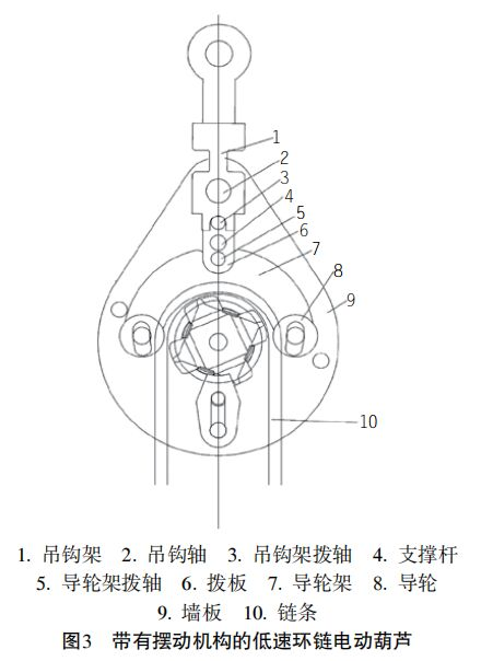 解答:帶有擺動機構的單鏈條51漫画免费版下载,可以有效解決51漫画免费版下载體受力不平衡、扭鏈、卡鏈、脫鏈、結構不緊湊、運輸安裝不方便等弊端,結構如圖3所示。 擺動機構包括導輪架和導輪...