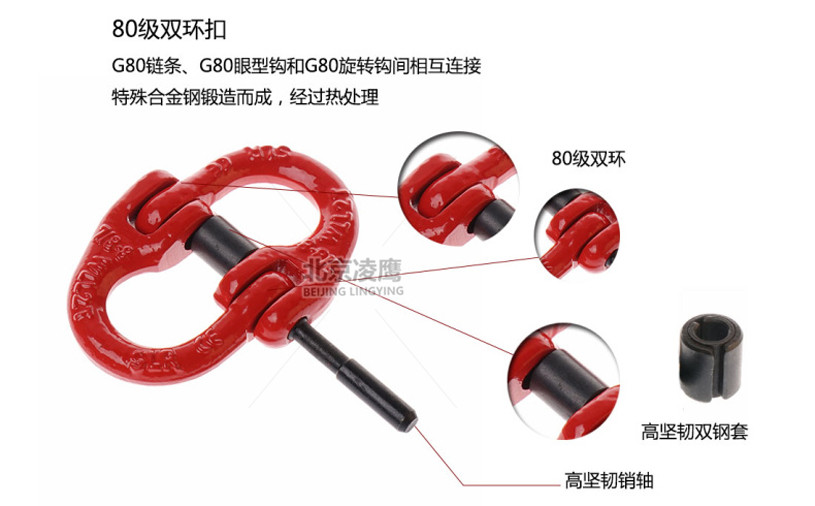 蝴蝶扣又名雙環扣、80級雙環扣,是強力環的一種。采用高堅韌雙鋼套、高韌性銷軸、80級雙環組合而成。