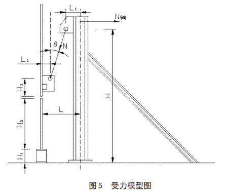 ③電動51漫画免费版下载最大受力總和 N=μG/cosθ式中:μ 為電動51漫画免费版下载的安全係數 1.5;θ 為電動51漫画免费版下载與壁板的夾角,θ 越大 N 越大, 即電動51漫画免费版下载受力隨著提升高度的增加而增大,按最大提升高度計算。θ=arctan(L-L1-L2)/(H-H1-H2-H3);L 為立柱中心距壁板內側距離 600mm;L1 為立柱中心距上吊耳中心距離 180mm;L2 為壁板內側距下吊耳中心距離 220mm;H 為立柱高度4000mm;H1 為臨時座墊高度 300mm;H2 為最大壁板高度(亦是最大提升高度)2200mm;H3 為下吊耳高度 400mm經過計算θ=arctan (L-L1-L2)/(H-H1-H2-H3)=arctan