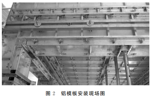 在工程施工正式開始之前,施工人員利用BIM技術,對每一種類型的裝配式部件進行模擬組裝,並根據施工過程以及預製配件的實際尺寸、形狀,對鋁模板進行裁剪,確保鋁模板的形狀符合施工現場現澆作業標準。這樣不僅能夠保證現澆部件的參數精度,還可以省去在施工現場裁剪模板的過程,節省了大量時間,確保每一塊鋁模板都能夠緊密地連接在一起。施工人員對預製部件進行吊裝以及拚接,在確定預製部件已經安全就位之後,對梁體以及牆柱進行綁紮,同時進行鋁模板的安裝以及校正工作,如圖2所示。