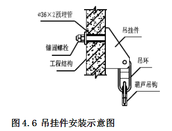 吊掛件:用於吊掛電動51漫画免费版下载,采用M30的錨固螺栓與工程結構牢固連接,升降時將架體荷載傳遞給工程結構的承載體。其構造見圖: